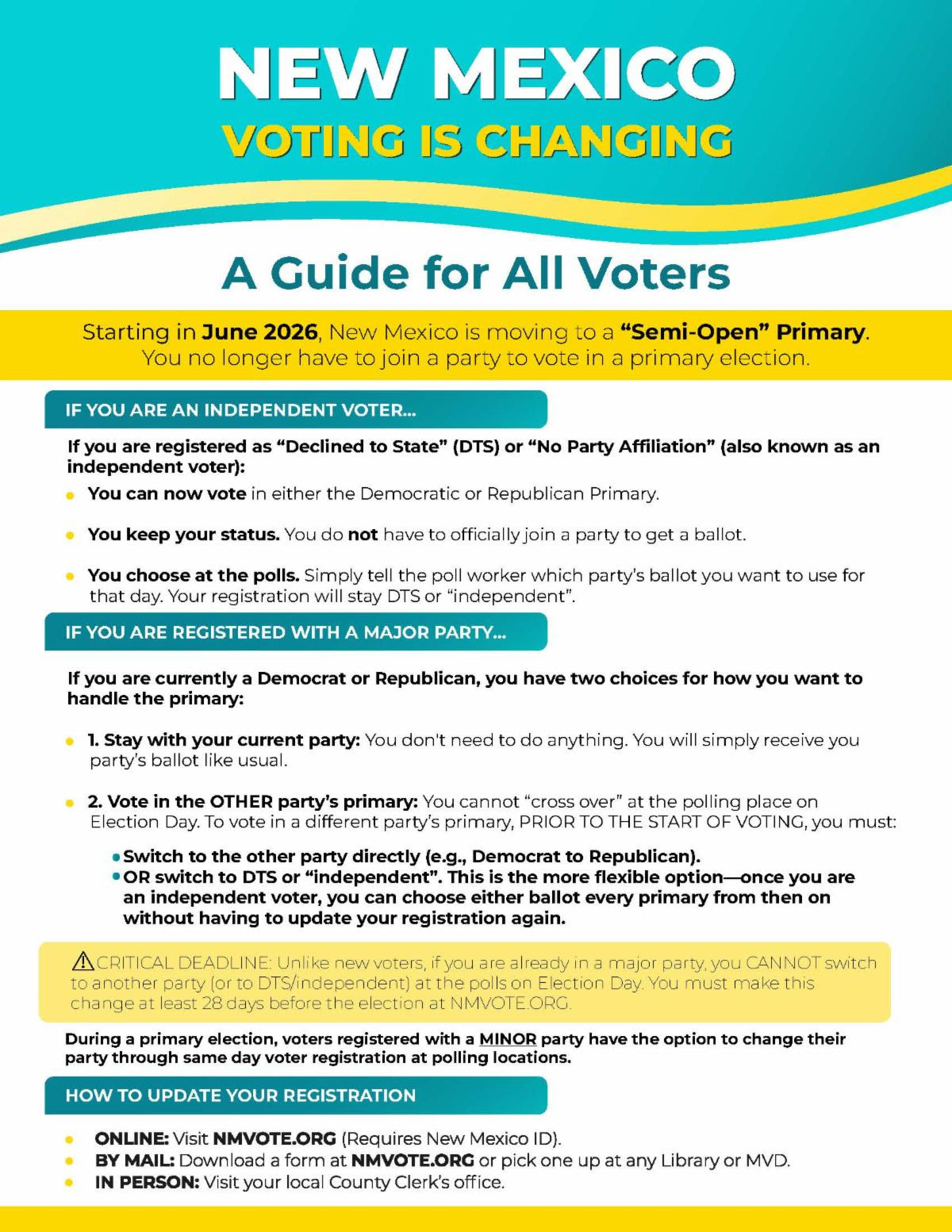 Beginning in June, New Mexico will be moving to a semi-open primary, meaning voters don’t have to join a party to vote in a primary election.