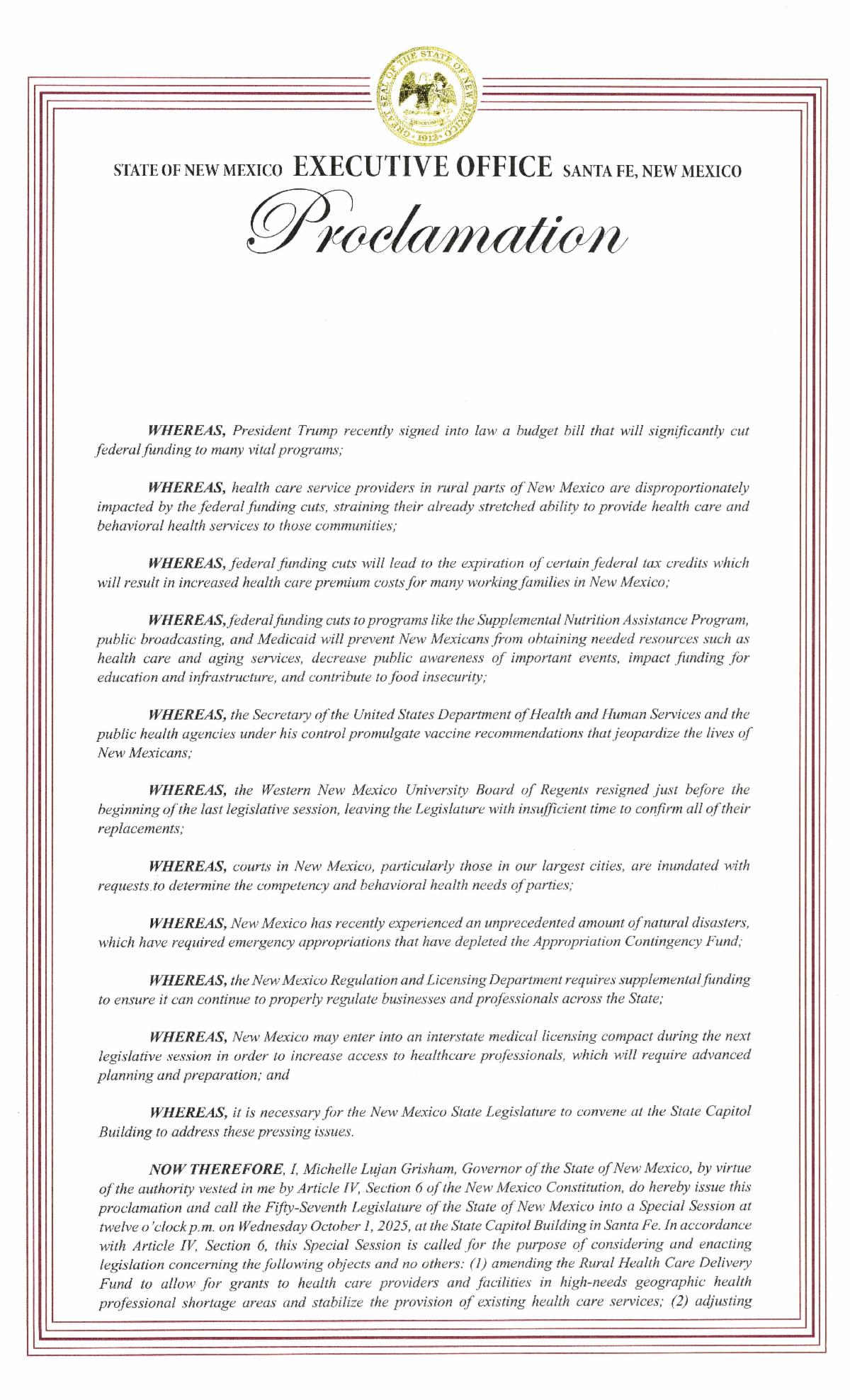 | Click here to read Gov. Michelle Lujan Grisham’s proclamation. |
