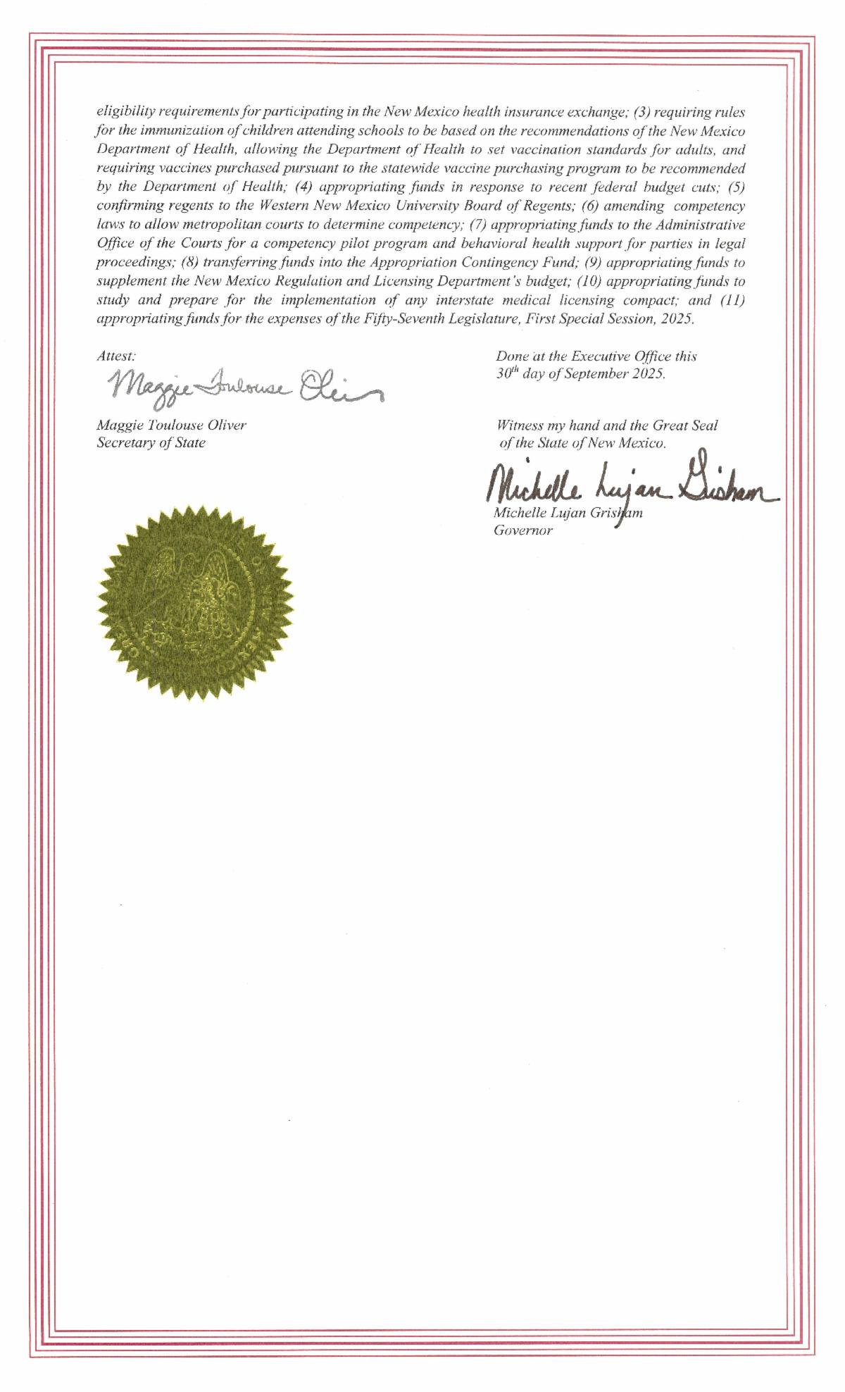 “While recent policy decisions out of Washington threaten to set us back, the special session provides us with an opportunity to take the first steps toward long-term stability for working families, rural communities and vulnerable populations across New Mexico. We are fortunate our state is in a strong financial position to help shield New Mexicans from these harmful federal cuts and policies that would otherwise undermine access to health care, nutrition assistance, vaccines and public media access.” |