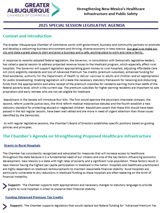 | Click to read the Chamber’s Special Session Legislative Agenda |