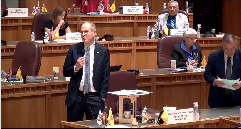 | Senate Majority Floor Leader Peter Wirth (D-Santa Fe) speaks in the Senate before it adjourned for the session. |