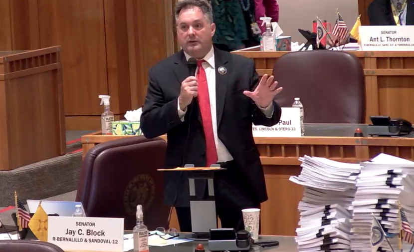 | Sen. Jay Block (R-Bernalillo & Sandoval) speaks on the Senate Floor on Thursday. |