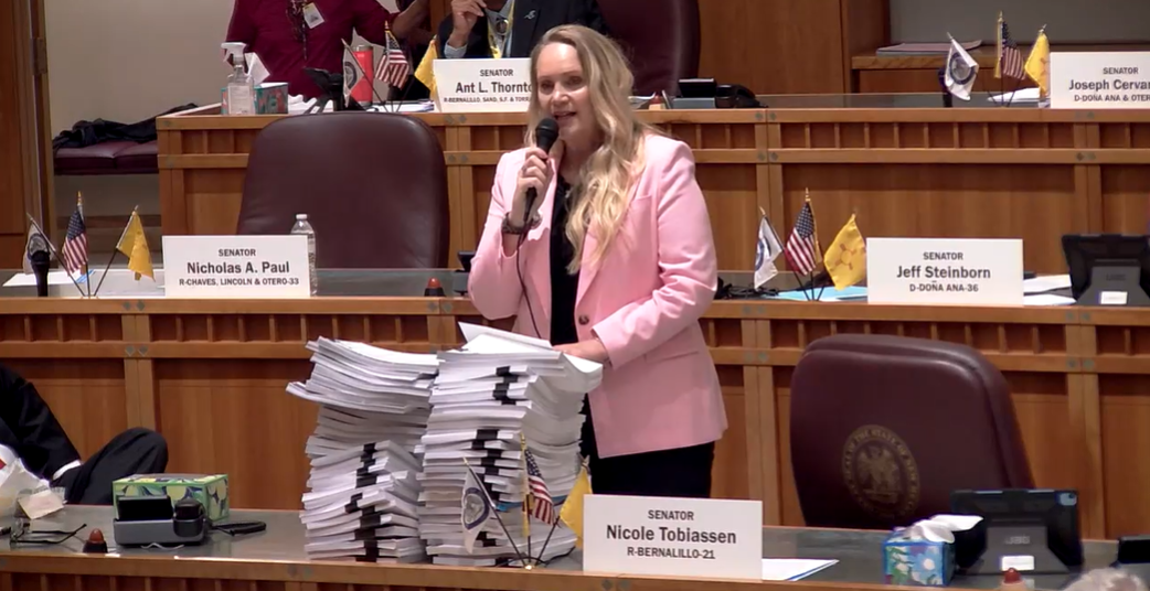 Sen. Nicole Tobiassen (R-Bernalillo) speaks on the Senate Floor on Thursday. |