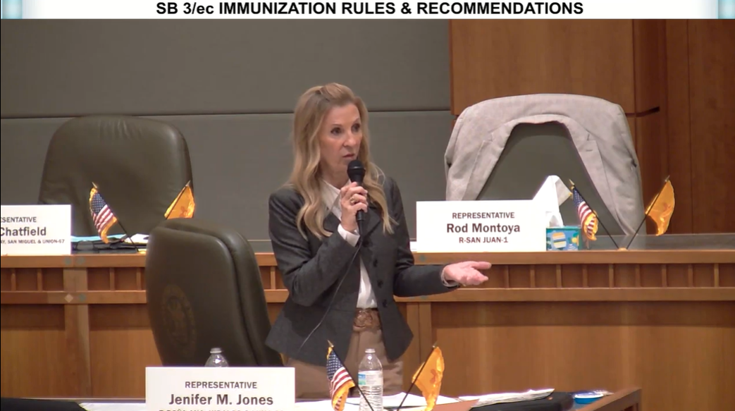 | Rep. Jenifer M. Jones (R-Doña Ana, Hidalgo & Luna) speaks on the House Floor on vaccination requirements for schoolchildren and adults on Thursday. |