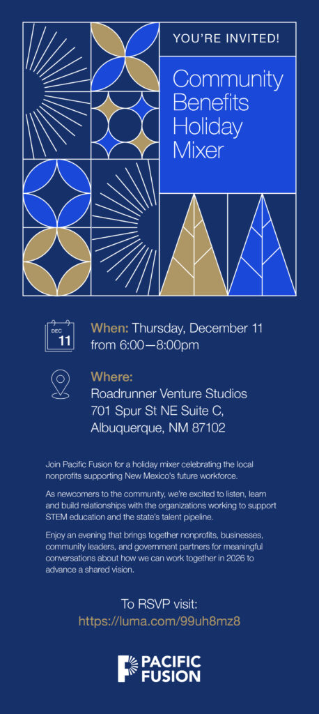 Pacific Fusion officials say, “as newcomers to New Mexico, we’re thinking carefully about how we do that effectively, starting by listening, learning and getting to know the organizations doing important work in STEM education and workforce development.”