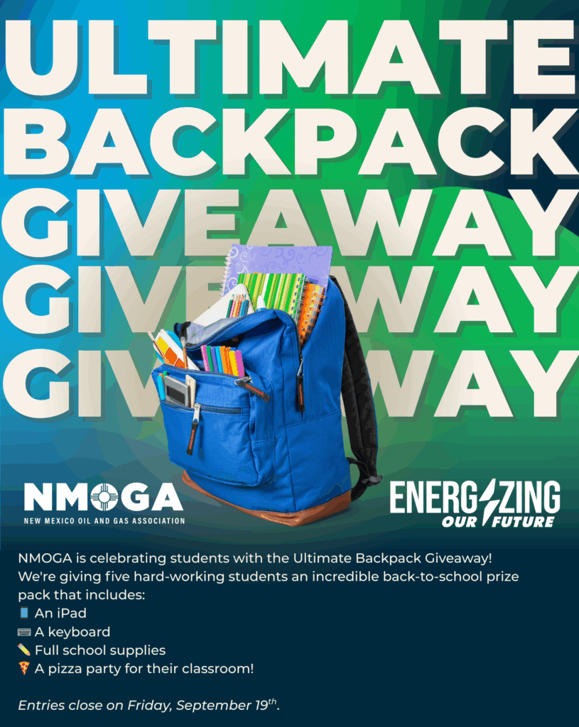 As students, teachers, and staff across the state return to school for the 2025–2026 school year, the New Mexico Oil and Gas Association (NMOGA) is encouraging families and students to enter its annual Ultimate Backpack Giveaway here.